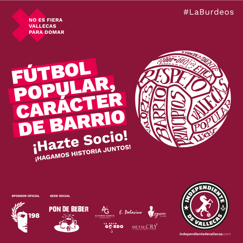 Por fin arrancó la campaña de Socios/as de Independiente de Vallecas. Si quieres formar parte de esta historia desde dentro, puedes darte de alta desde ya mismo. Tienes toda la información en la sección Hazte socio. ¡Hagamos historia juntos!