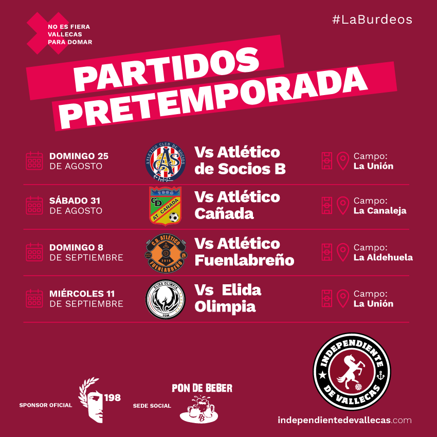 Por otro lado, ya están confirmados los cuatro partidos de pretemporada. El primero será el 25 de agosto ante el Atlético Club de Socios B, en el mismo lugar y a la misma hora.