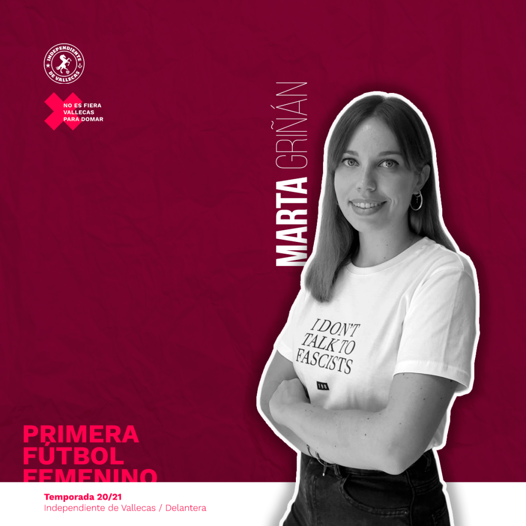 Marta Griñán, nacida en Murcia (y residente en Vallecas) hace 29 años, llega a Independiente procedente de Delta Epsilon. Se desempeña como delantera y cuenta con experiencia en el fútbol sala municipal y universitario.