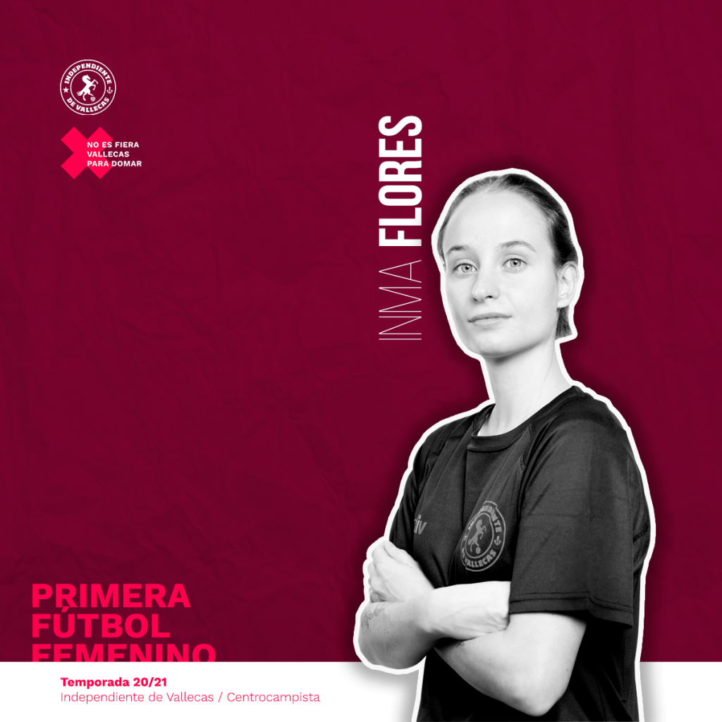 Inma Flores es otro de los fichajes de Independiente para esta temporada. Tiene 26 años, es sevillana y llega a Vallecas para reforzar el mediocentro burdeos tras sus experiencias en el fútbol andaluz y madrileño.