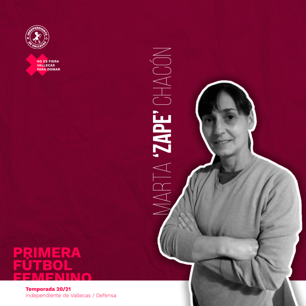 Marta Chacón Carballal, más conocida como Zape, ficha por Independiente de Vallecas y pasa a formar parte de la plantilla del Femenino. Su experiencia (tiene 45 años) será fundamental para el equipo dirigido por Dámaris Arranz.