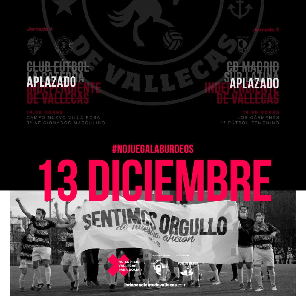 Este aplazamiento se suma al del partido del Femenino, que tampoco podrá jugar este domingo ante Madrid Sur Latina. En este caso fue dicho equipo quien lo solicitó. Iremos informando en cuanto sepamos las nuevas fechas asignadas para ambos partidos.