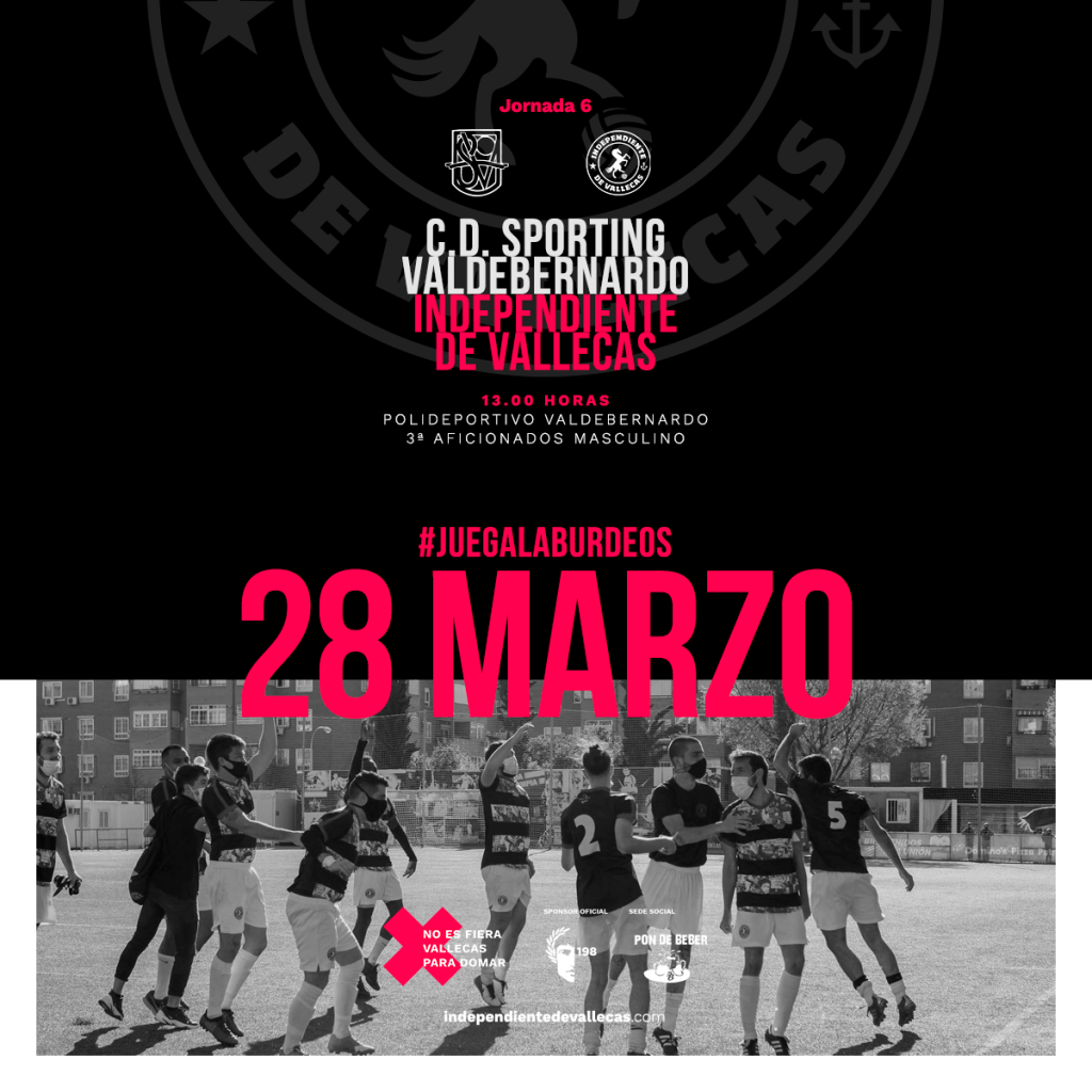 Este domingo 28 de marzo a las 13:00 hs el Masculino de Independiente de Vallecas disputará su partido correspondiente a la aplazada jornada 6. Será frente al Sporting Valdebernardo «A» en el Polideportivo Valdebernado. Estará permitida la entrada de espectadores.