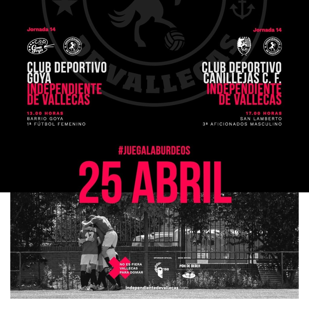 El equipo dirigido por Txarli F. Castaño se desplazará hasta el distrito de Latina para enfrentarse al C.D. Goya en el campo Barrio Goya (Pablo Sarasate, 1) a partir de las 13:00 hs y a puertas abiertas.
