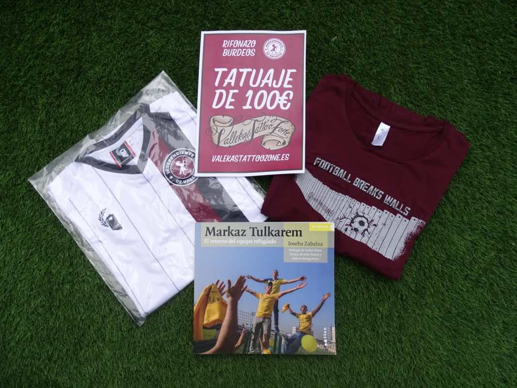 Estos serán los premios: una camiseta oficial de la segunda equipación de esta temporada, un tatuaje de Vallekas Tattoo Zone valorado en 100€, una camiseta Football Breaks Walls y un ejemplar del libro Markaz Tulkarem: el retorno del equipo refugiado.