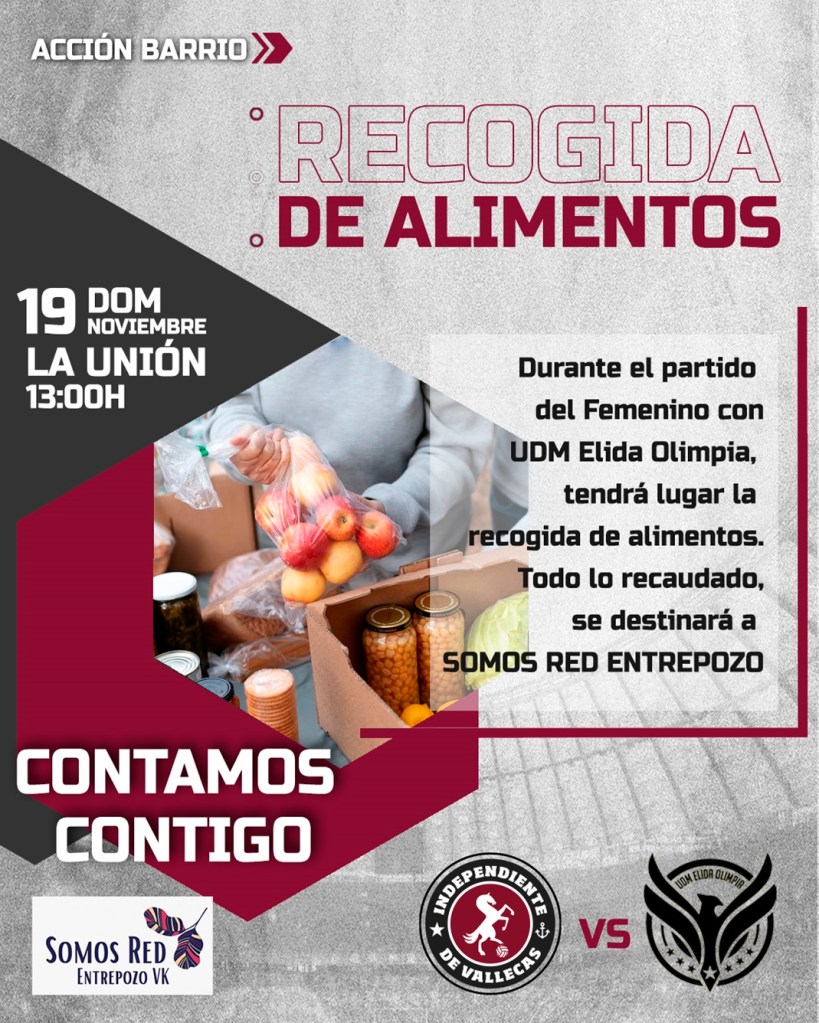 Este domingo 19 de noviembre a partir de las 12:00 horas volvemos a colaborar con Somos Red EntrePozo VK recogiendo alimentos no perecederos en la Unión.