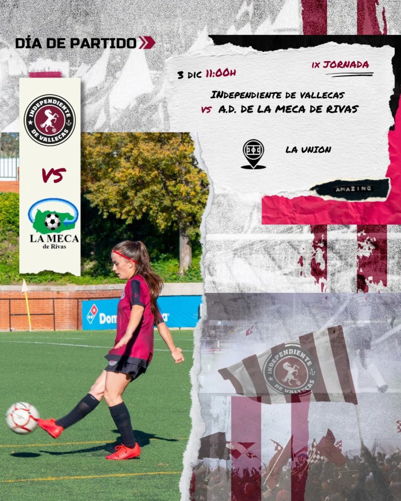 Tras la nueva victoria del conjunto femenino dirigido por Álex Ortiz la semana pasada, este domingo 3 de diciembre a las 11:00 os esperamos para animar a nuestra #Banda favorita en su encuentro contra las lideresas de la competición, A.D. la Meca de Rivas. ¡En la Unión!